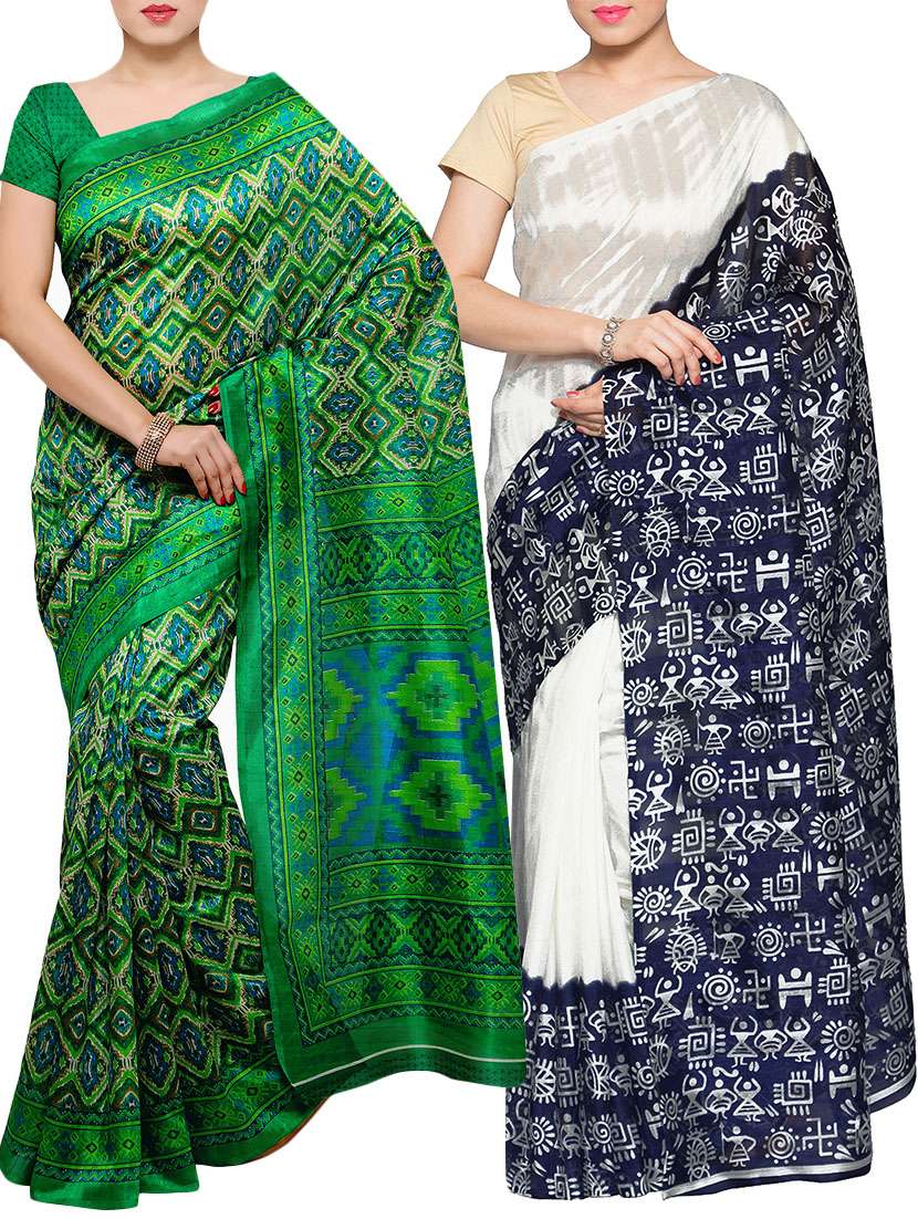 set of 2 multicolored cotton silk saree with blouse