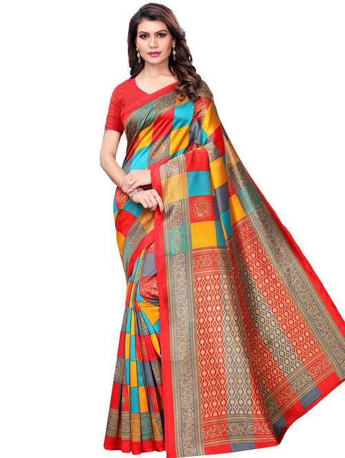- » checkered printed bhagalpuri saree with blouse