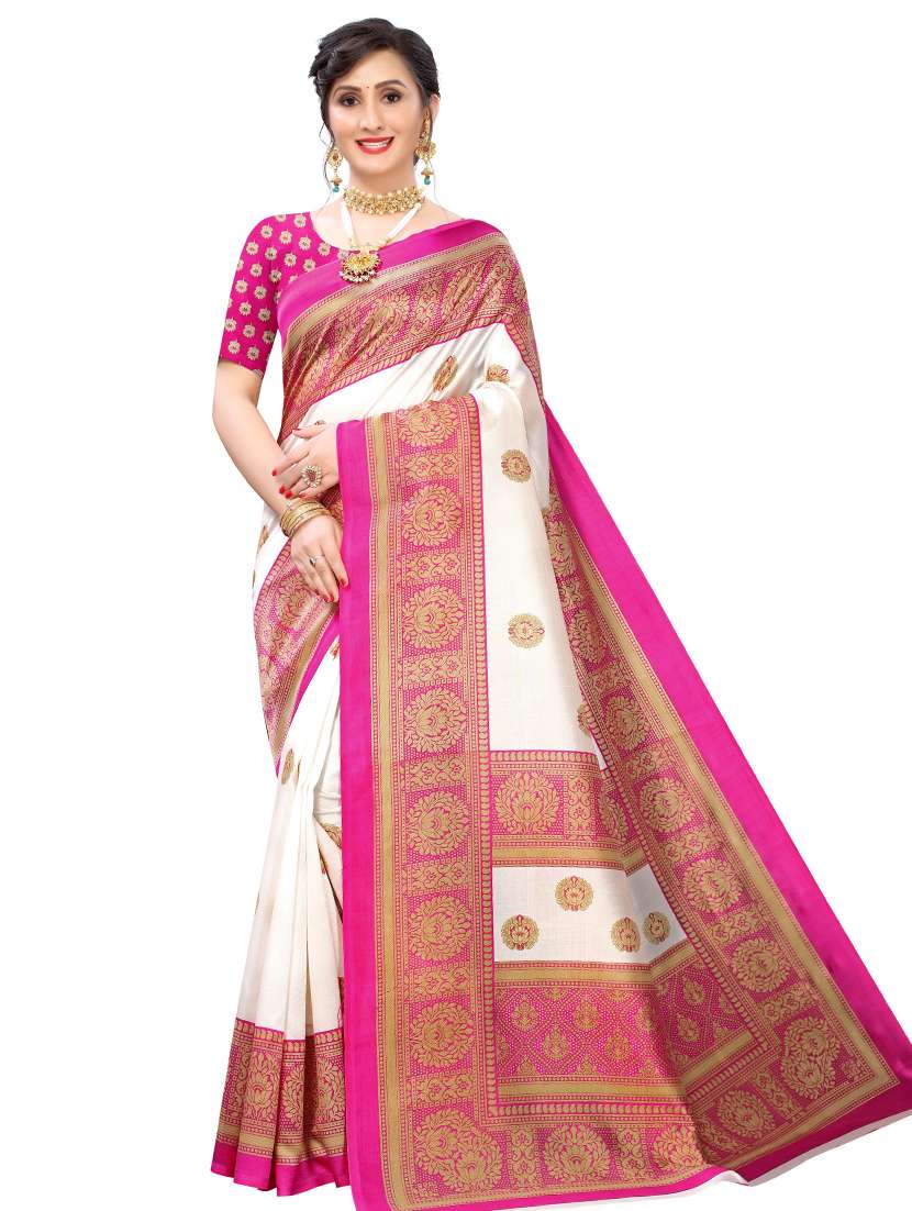 - » contrast bordered printed saree