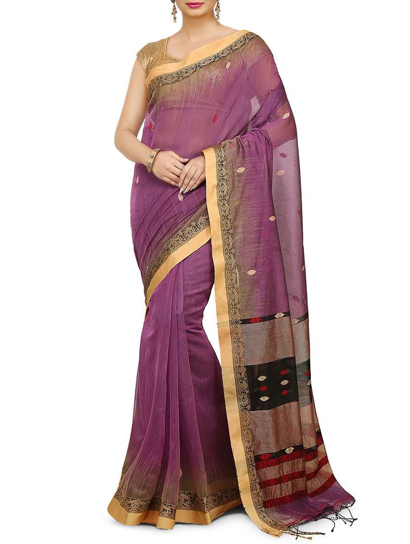 - » Delicate golden bordered handloom saree with blouse