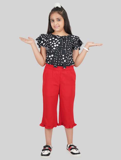 - » girls round neck polka dots capri sets