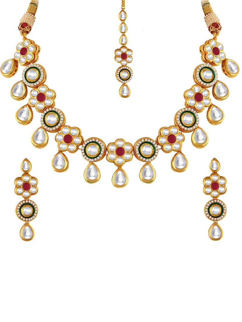 - » gold plated necklace earing set with mangtikka