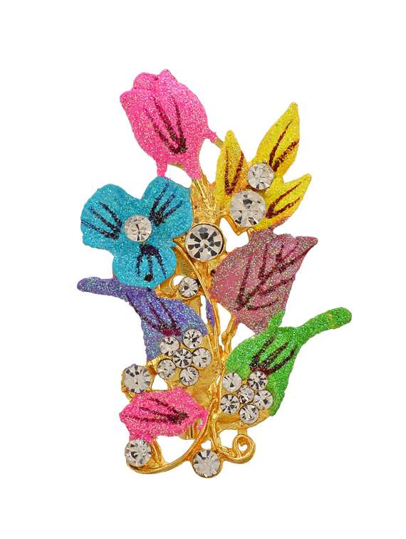- Level up your fashion accessory game with an exceptional range of brooches in multi colours made of brass materials which stand out and make your look more astonishing.