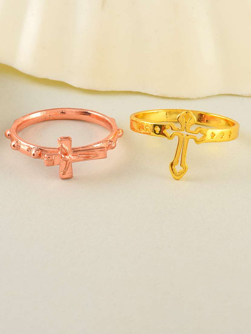 men brass crucifix cross chrisitian finger ring combo