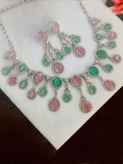 women stone studded necklace and earring set - 22278029 -  Standard Image - 1 women stone studded necklace and earring set - 22278029 -  Zoom Image - 1