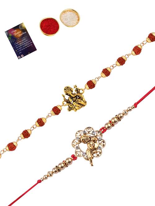 pack of 2 rakhi with roli chawal & greeting card - 17910053 - Very Small Image - 1