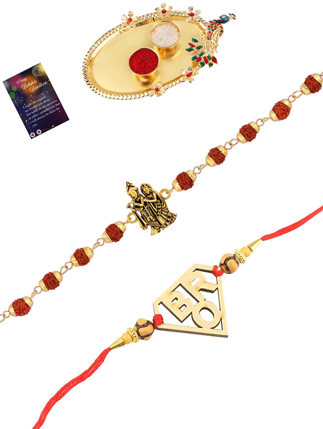 pack of 2 rakhi set with roli chawal, greeting card and kankawati pooja thali