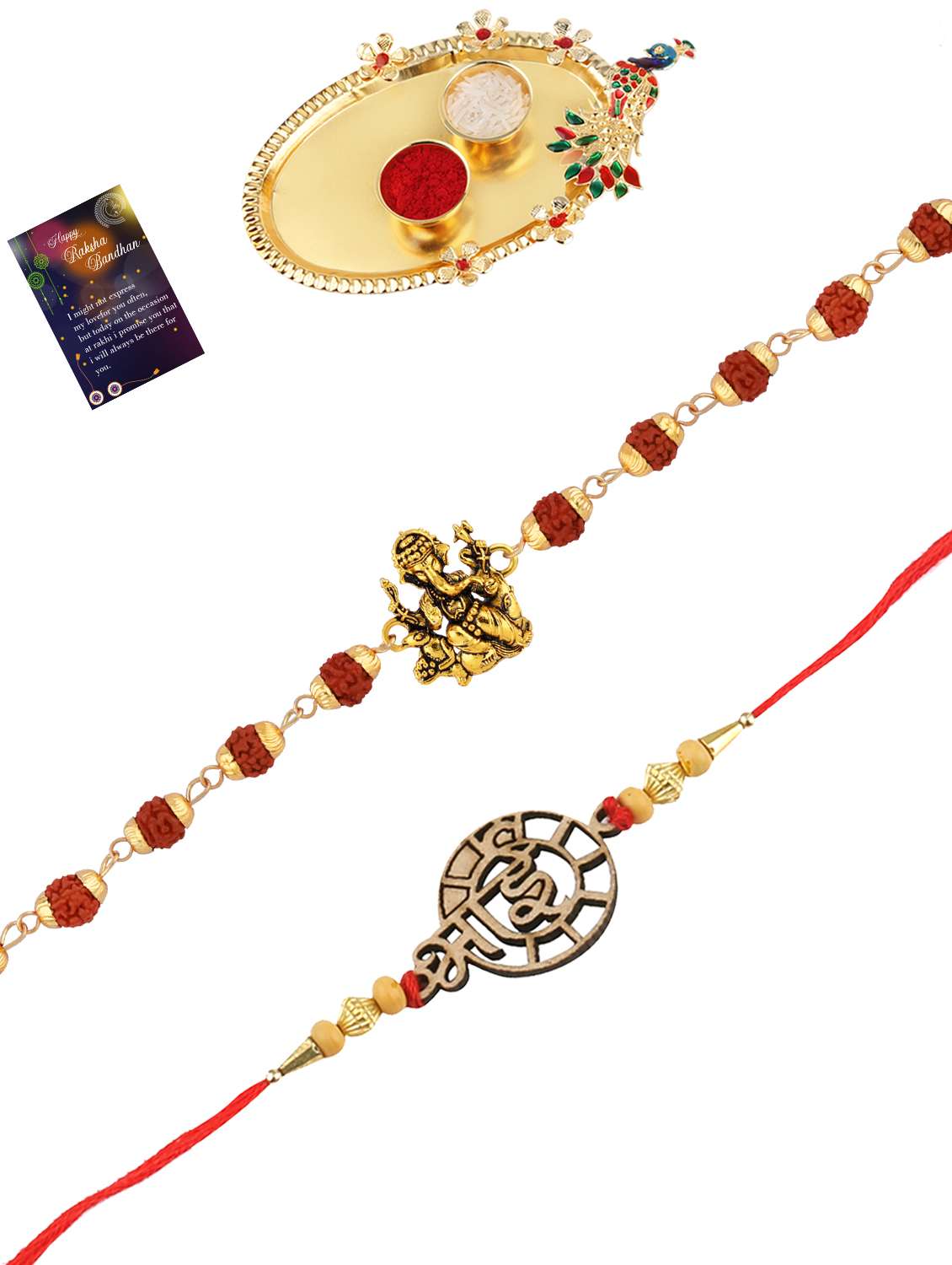 pack of 2 rakhi set with roli chawal, greeting card and kankawati pooja thali