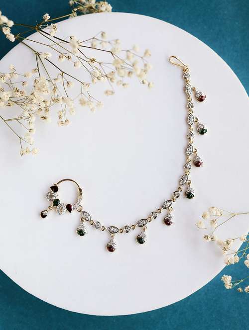 Add a touch of elegance and sophistication to any ensemble with our Suvarnarekha Two Tone Gold Silver Nath. Made from the finest materials and expertly crafted, this nath (traditional nose ring) features a stunning two tone gold and silver design. Elevate your style and make a statement with this luxurious piece of jewelry.