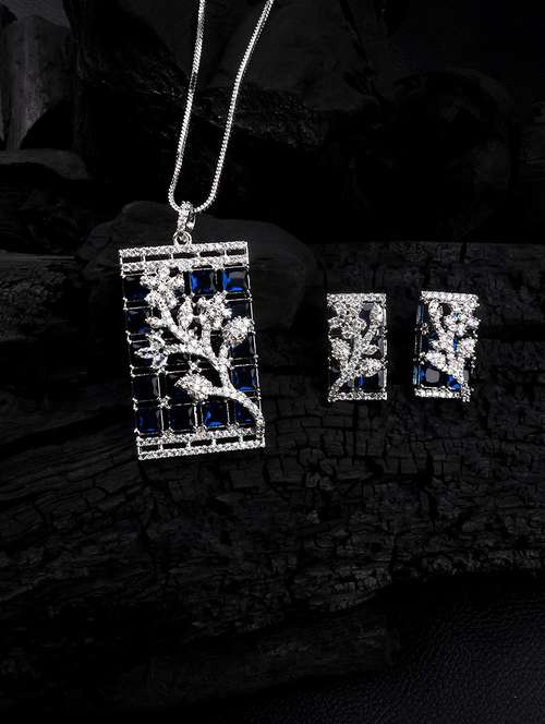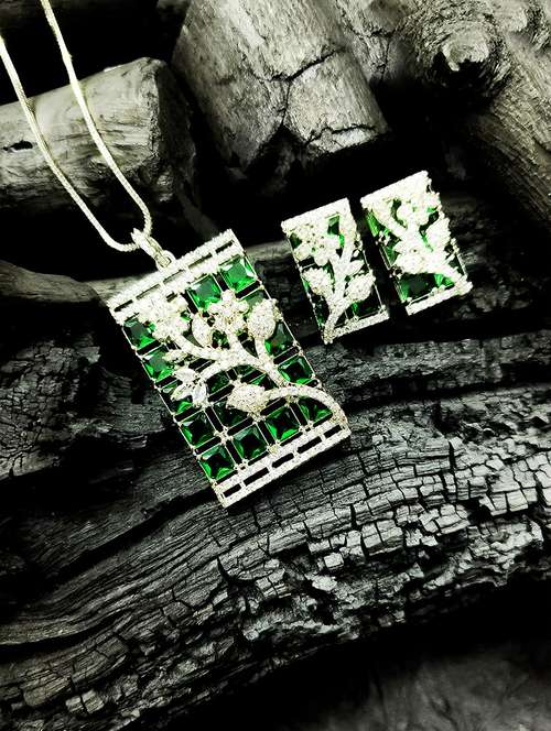 Charming AD pendant set crafted with sparkling stones, perfect to add a refined touch to festive and special occasion looks.