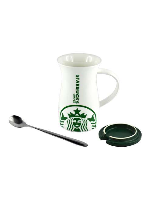 barworld ceramic 400 ml starbucks mug with lid and spoon
