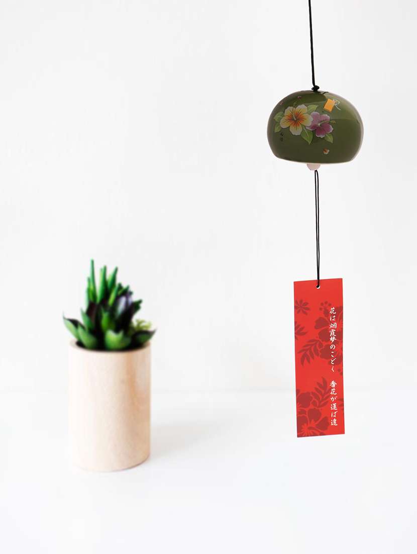 - » ceramic melodious sound wind chime bell in green color with flower design