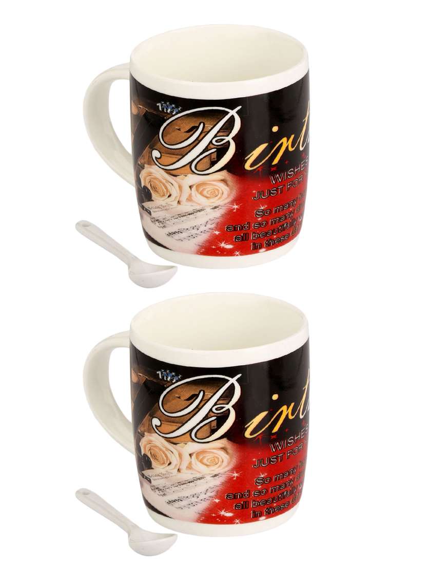 lakshya new designer happy birthday mug set of 2 with spoons - 13787157 - Very Small Image - 1