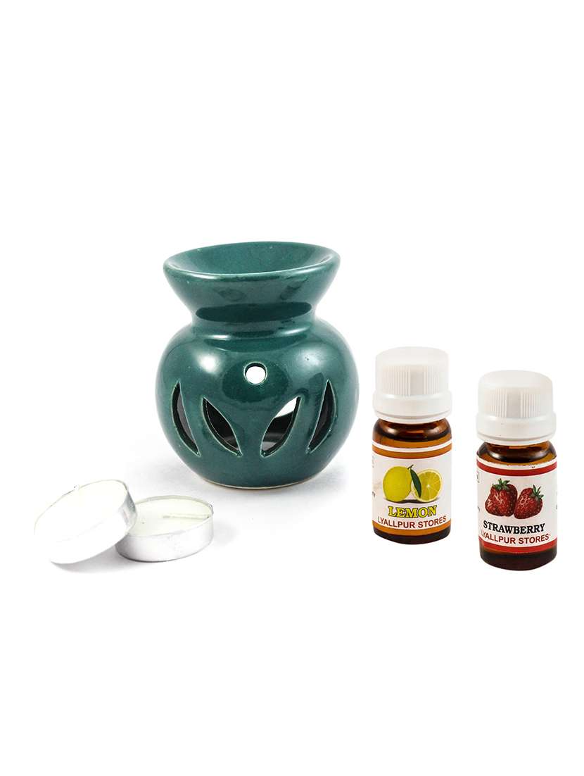 ceramic aroma tealight diffuser oil burner multicolour with lemon and strawberry fragrance oil and t light candle - 16113738 - Very Small Image - 1