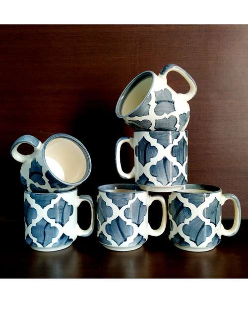- » moody panda elegant set of 6 cups | handpainted cup set | set of 6 cups | stoneware