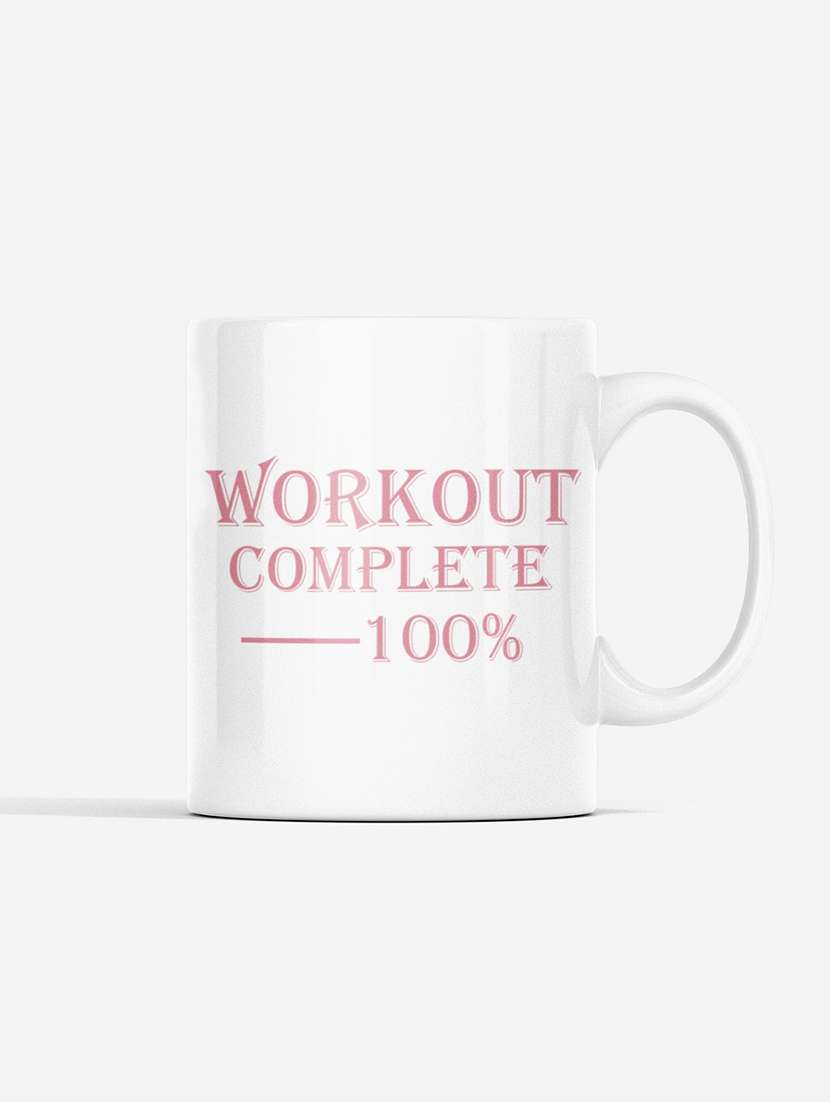workout complete 100%, (bg pink) - printed coffee mugs for gym lovers