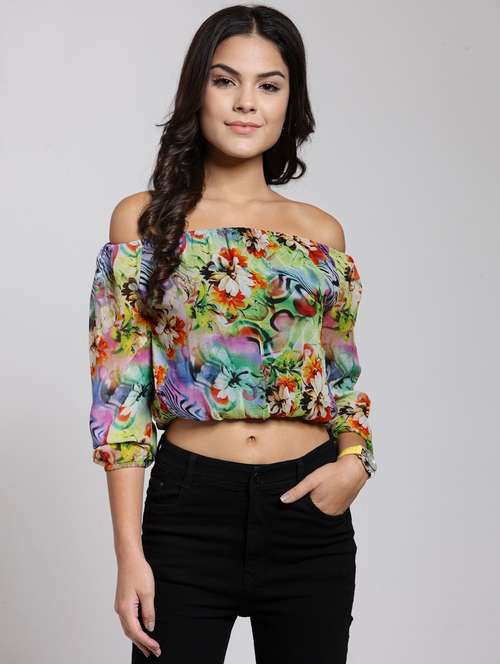 - » off shoulder printed crop top
