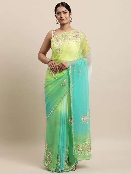 multi colored chiffon embroidered saree with blouse