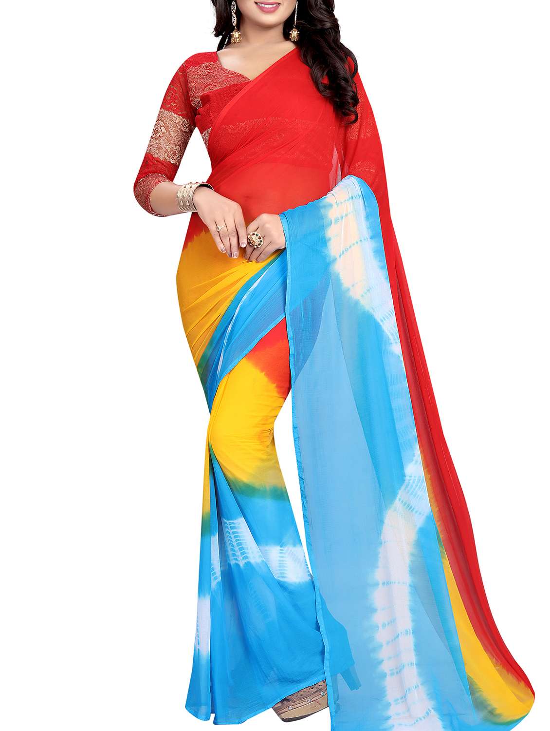 - » contrast shades tie & dye saree with blouse