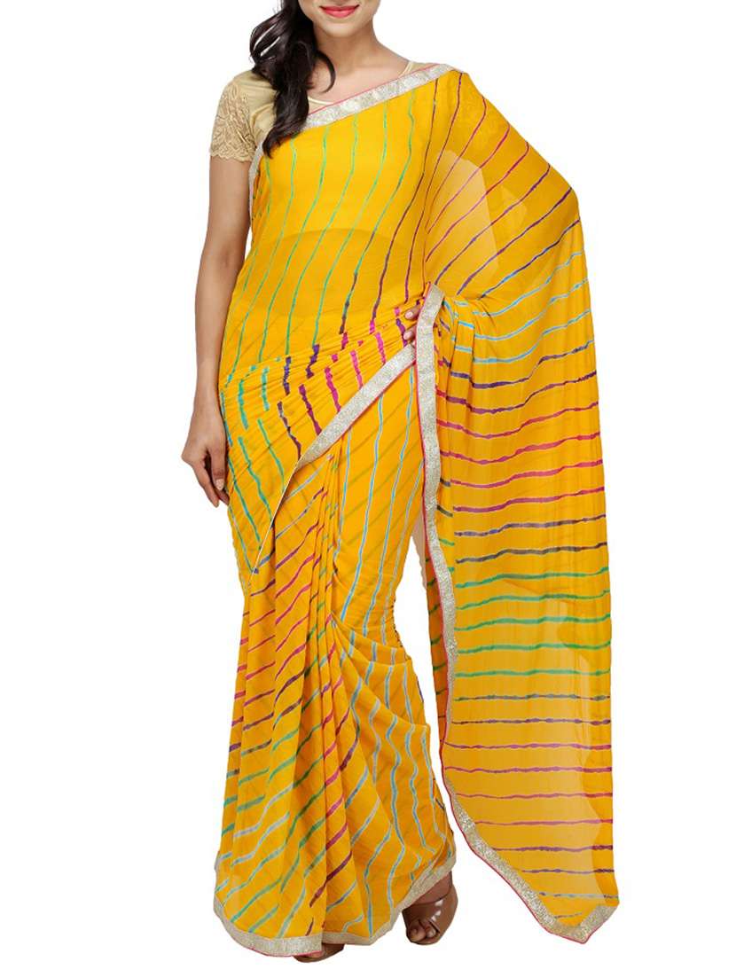- » yellow leheriya chiffon saree with blouse