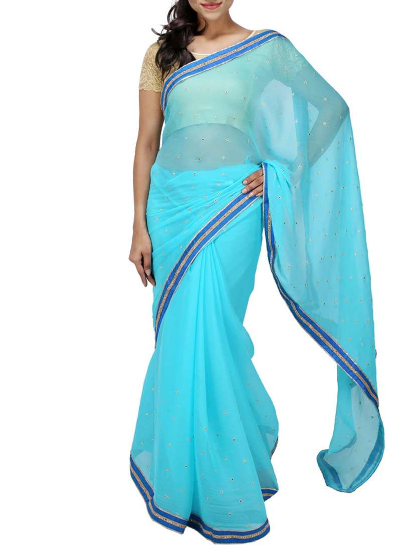 - » sky blue embellished chiffon saree with blouse