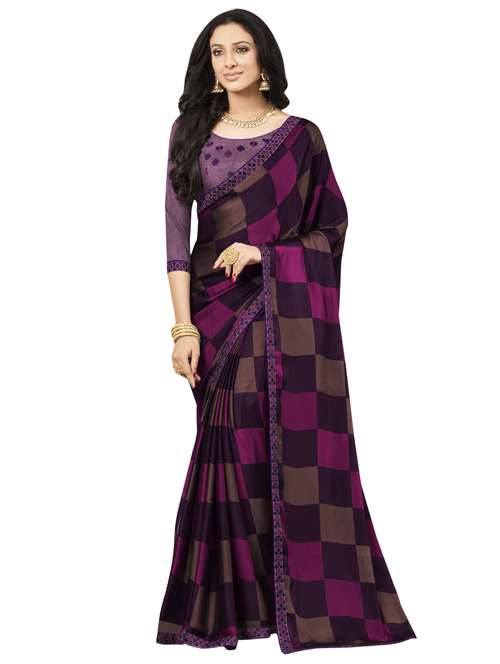 checkered printed saree with blouse