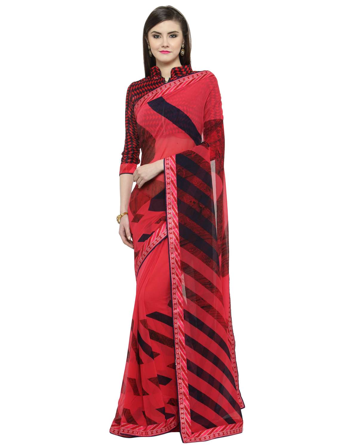 red georgette printed saree with blouse - 14884288 - Very Small Image - 1