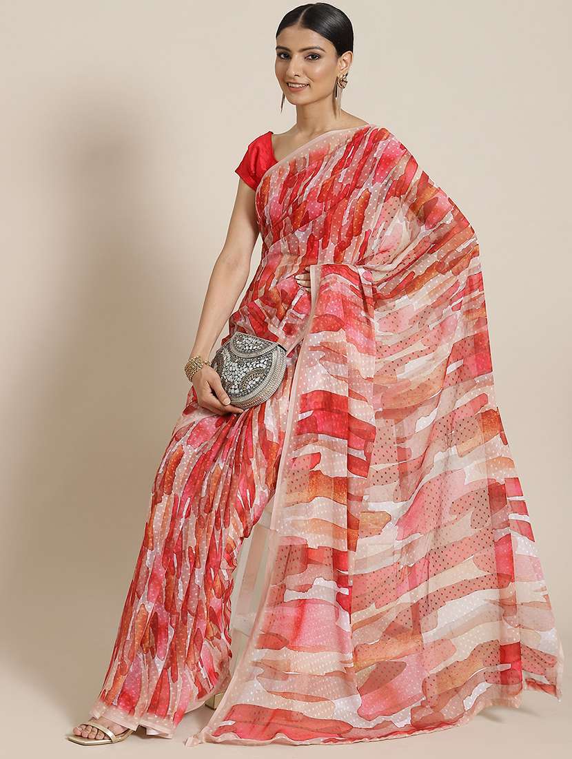 dobby work printed saree with blouse