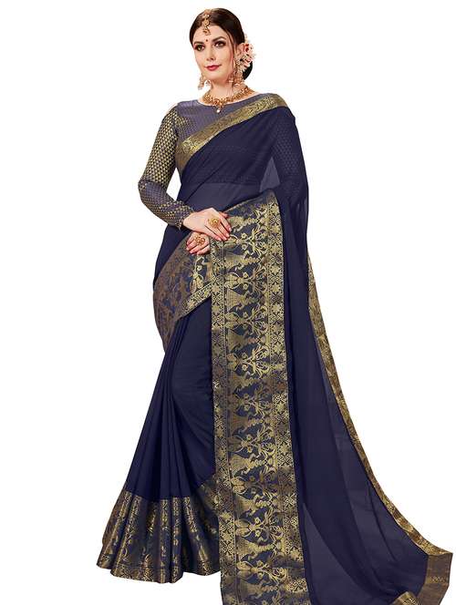 - » navy blue bordered saree with blouse