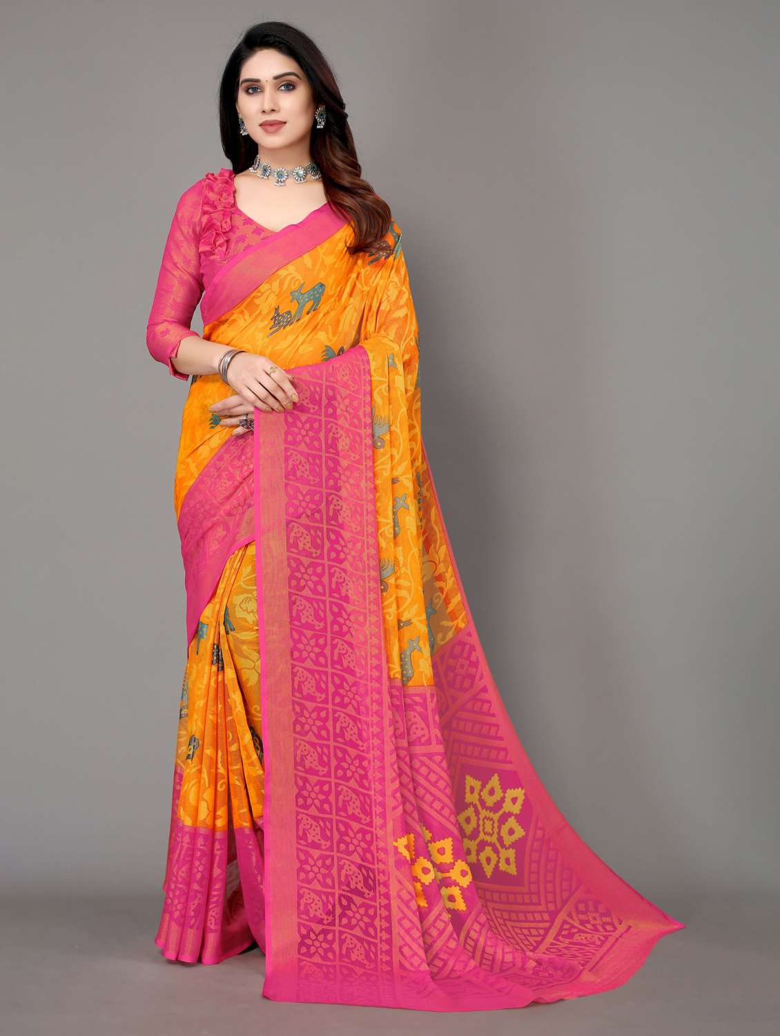 - » pink woven saree with blouse