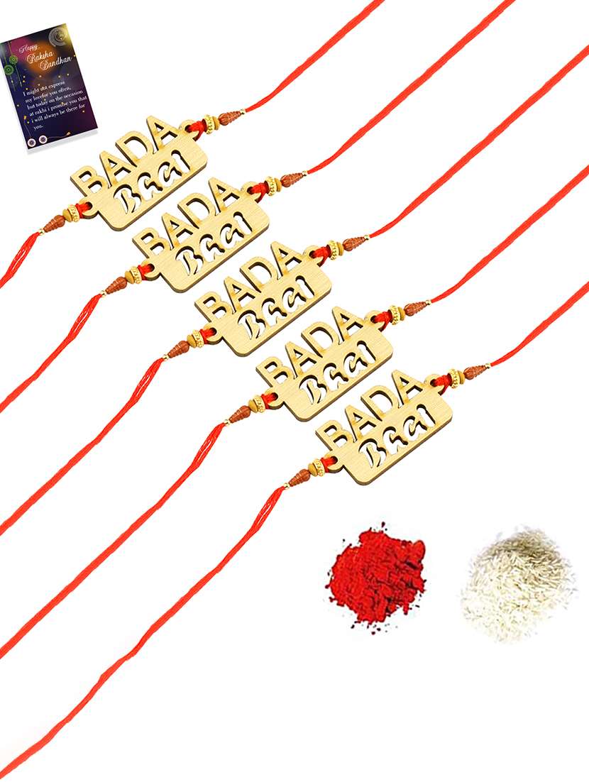 pack of 5 stylish bhaiya rakhi with roli chawal with and 1 greeting card