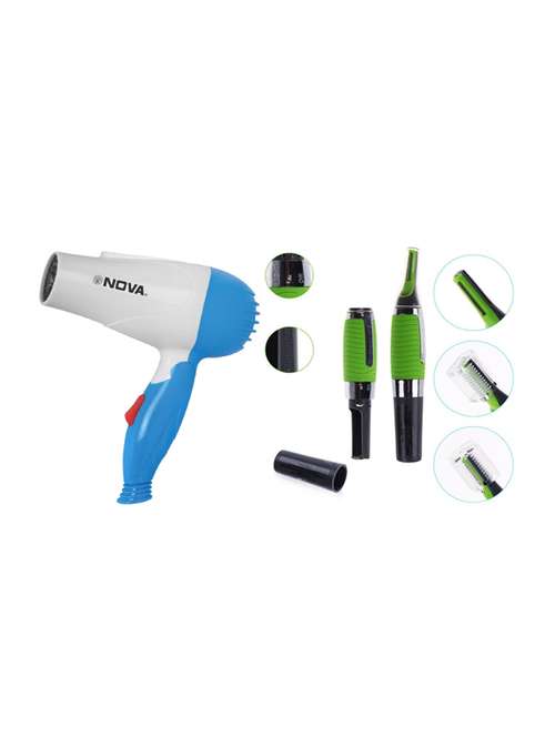 nova combo of hair dryer and micro touch personal ear nose neck eyebrow hair trimmer remover (multi color)