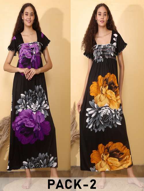 Add comferts and elegance to your night time routine with this pack of 2 floral print nighties, beautifully designed to make feel relaxed and stylish. Upgrade your sleepwear collection with this fashionable nightwear set.