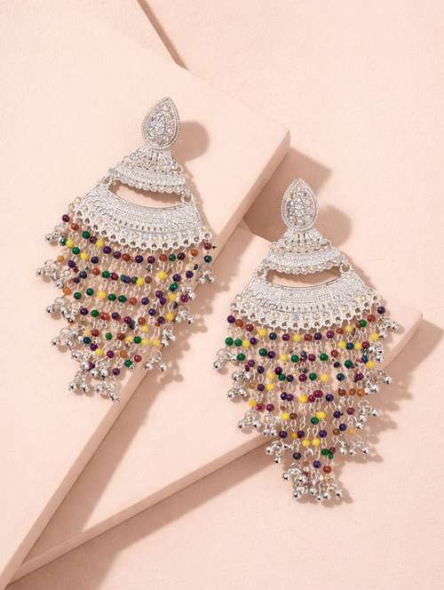 - » oxidised silver multicolor beaded long chandbali earrings for women