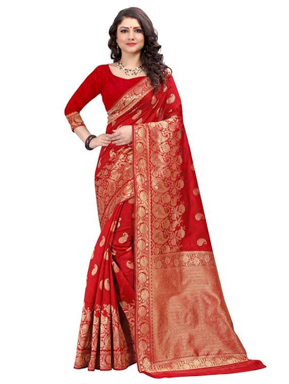 - » women's self design red colored saree