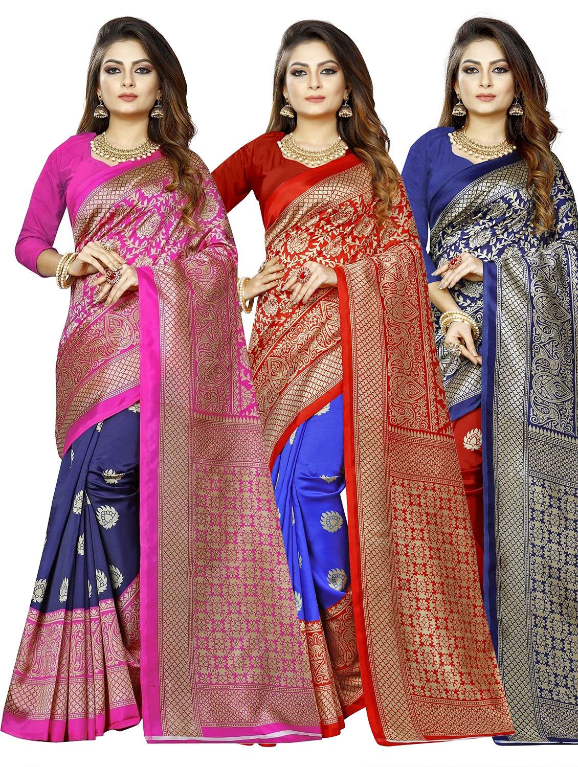 - » combos pack of 3 self design sarees with blouse