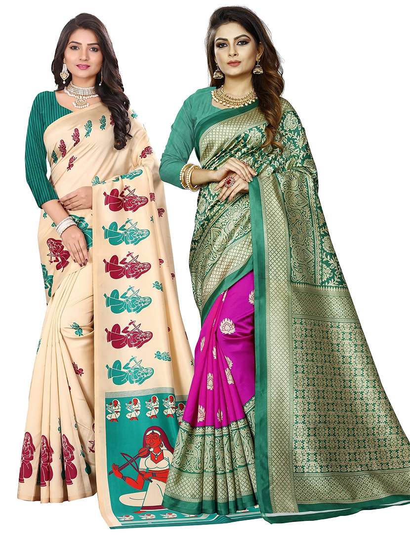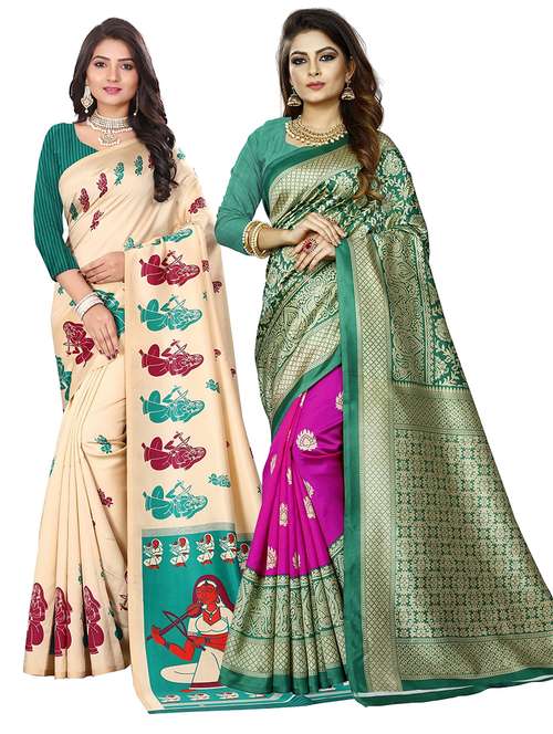 pack of 2 multi colored combo saree with blouse - 21300249 - Very Small Image - 1