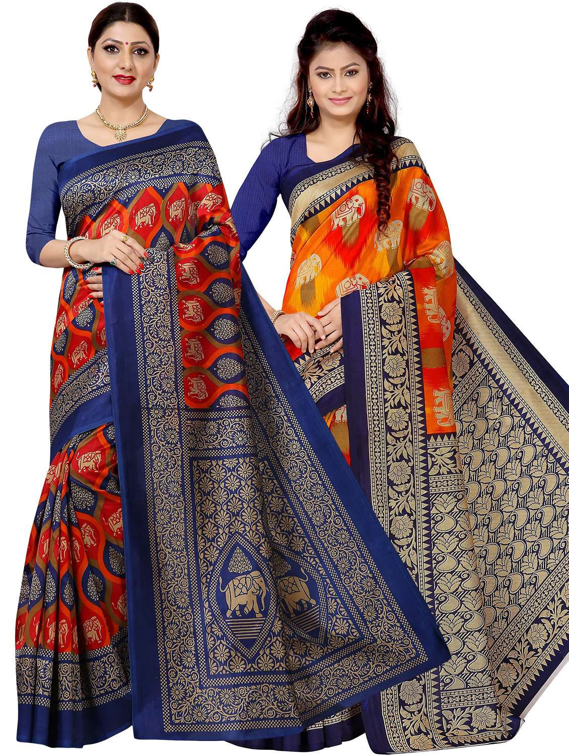 pack of 2 multi colored combo saree with blouse - 21301567 - Very Small Image - 1