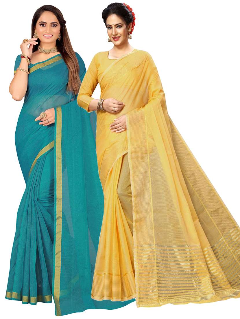 pack of 2 bordered saree with blouse