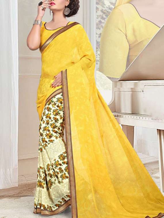 - » yellow and white art silk half & half saree with blouse
