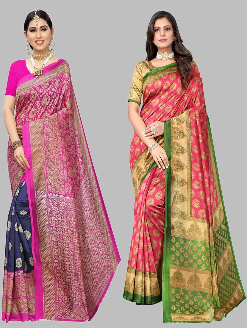 - » women pack of 2 printed sarees with blouse