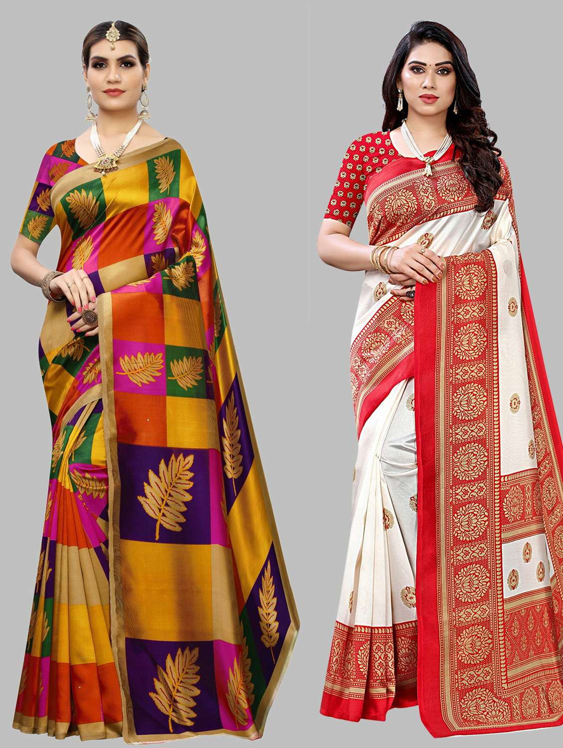 - » pack of 2 multi colored printed saree with blouse