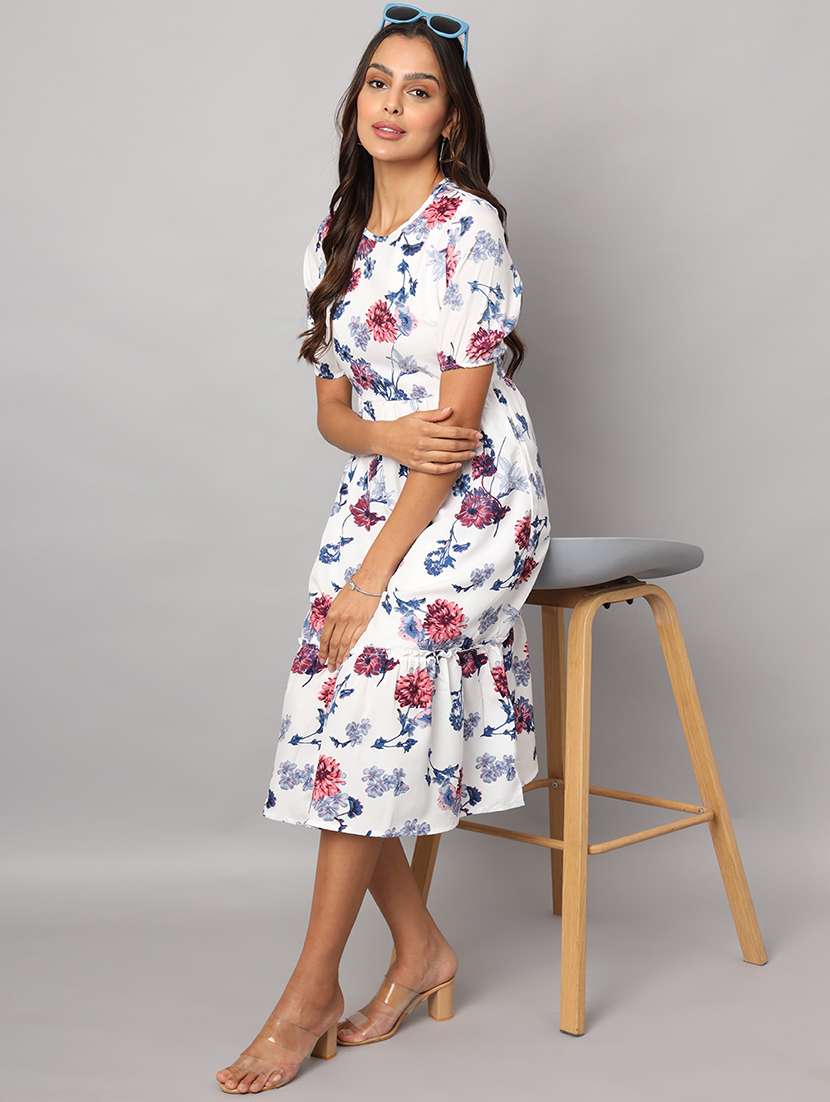 women floral print puff sleeves tiered dress
