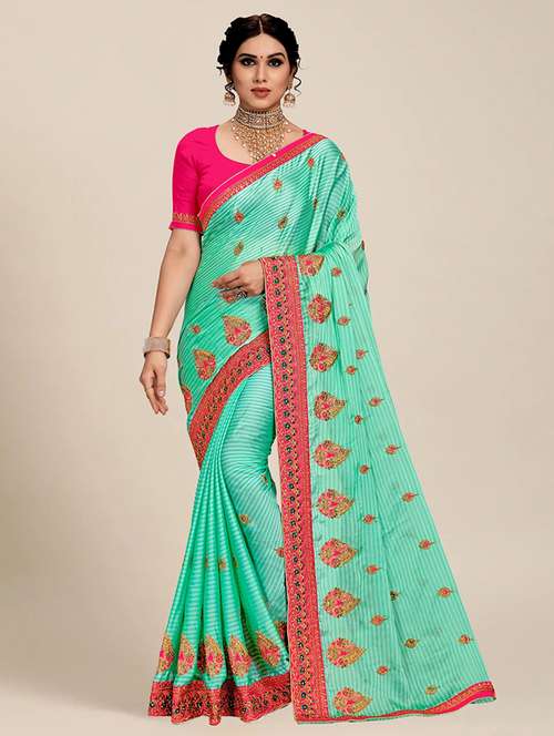 - » women sea green embroidered saree with blouse