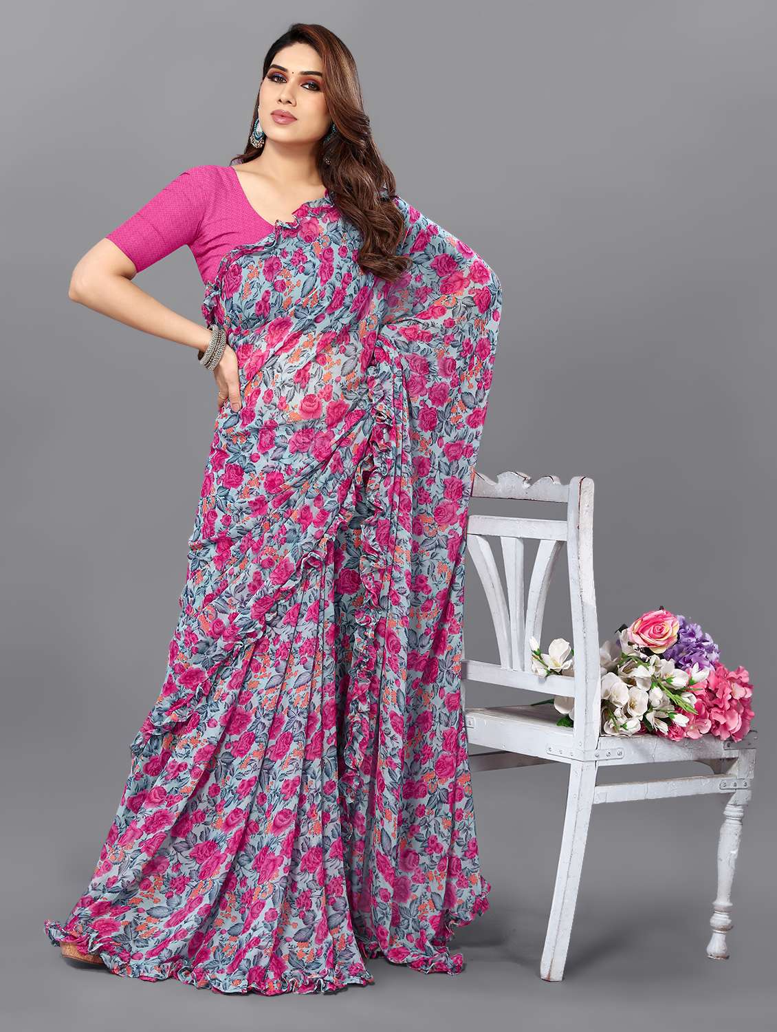 women printed saree with blouse