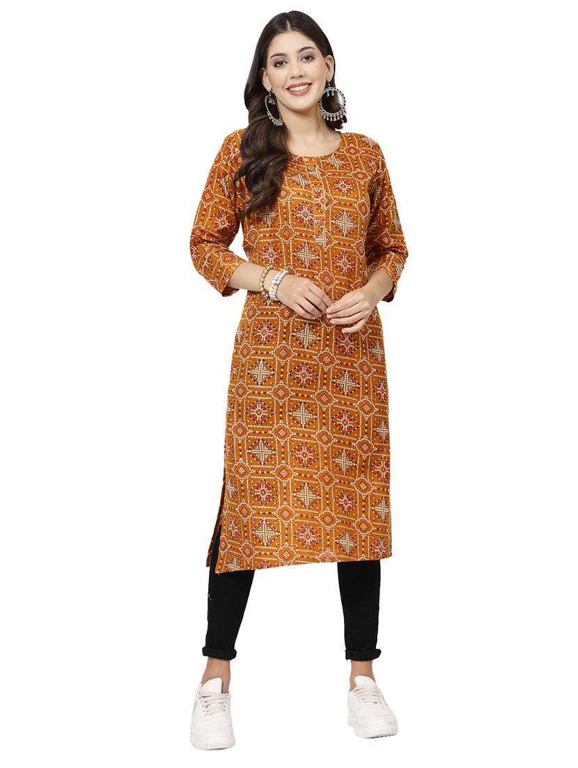 women round neck printed straight kurta