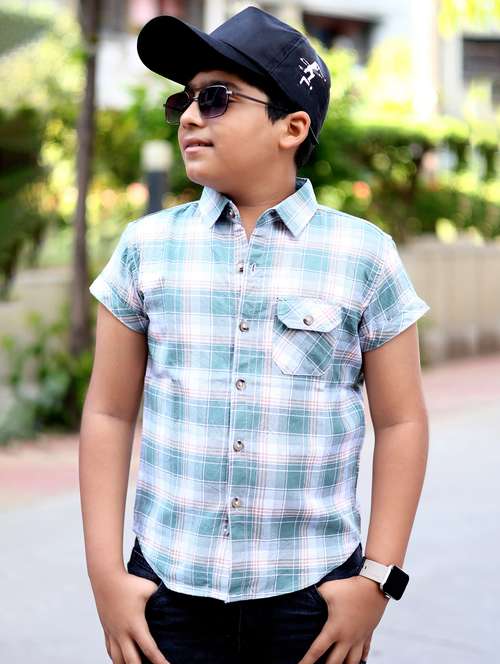 boys checkered short sleeve casual shirt