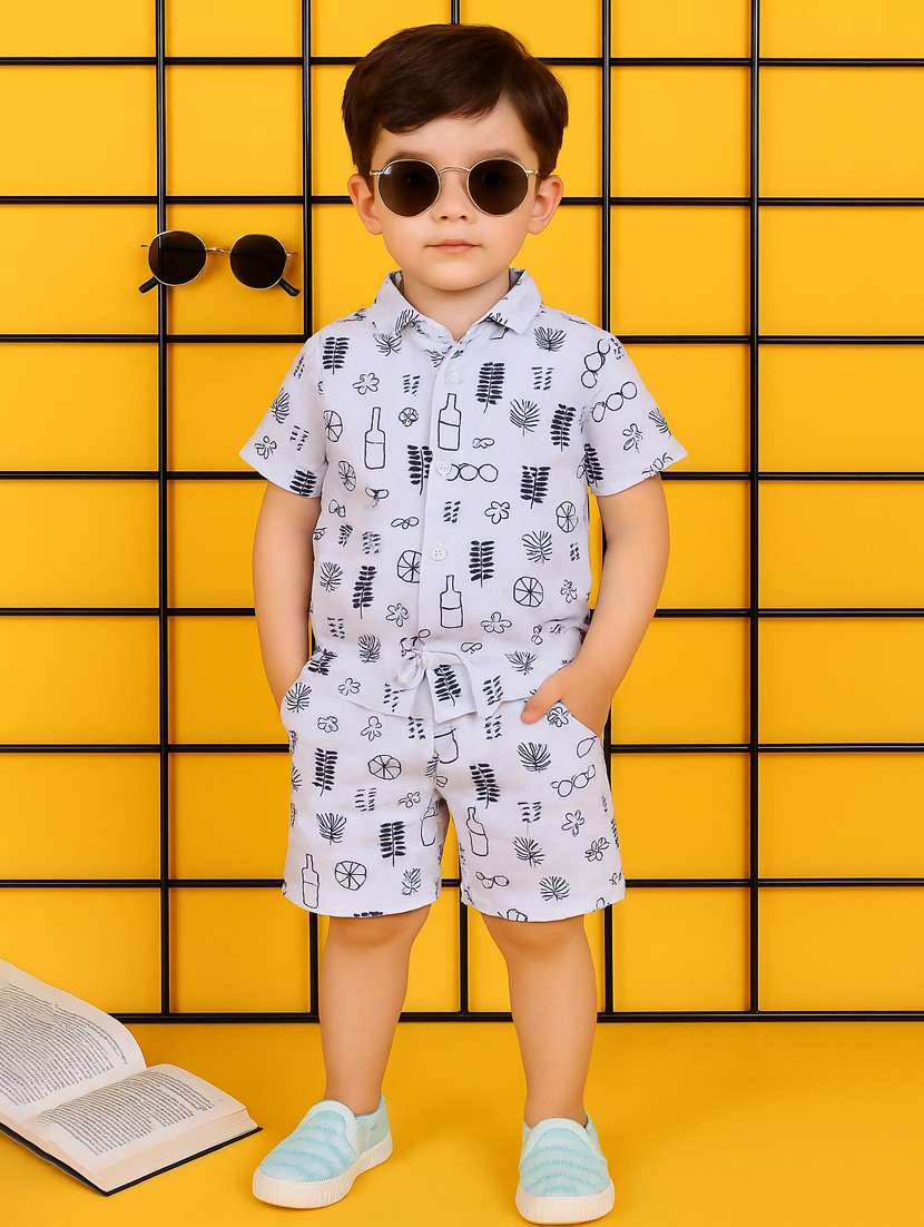- » boys printed shirt & shorts co-ord set