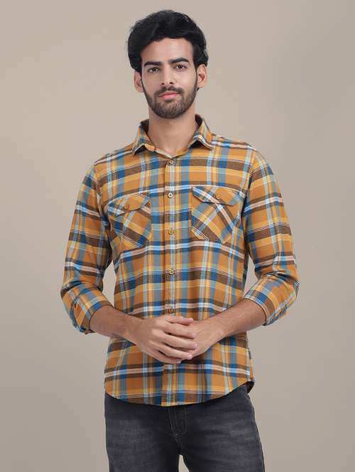 - » men regular fit checkered double pocket casual shirt