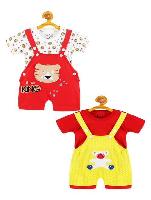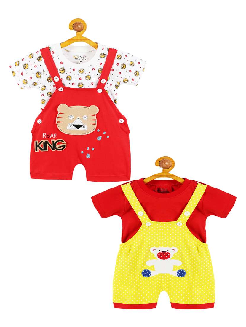 - » boys set of 2 round neck graphic printed dungarees
